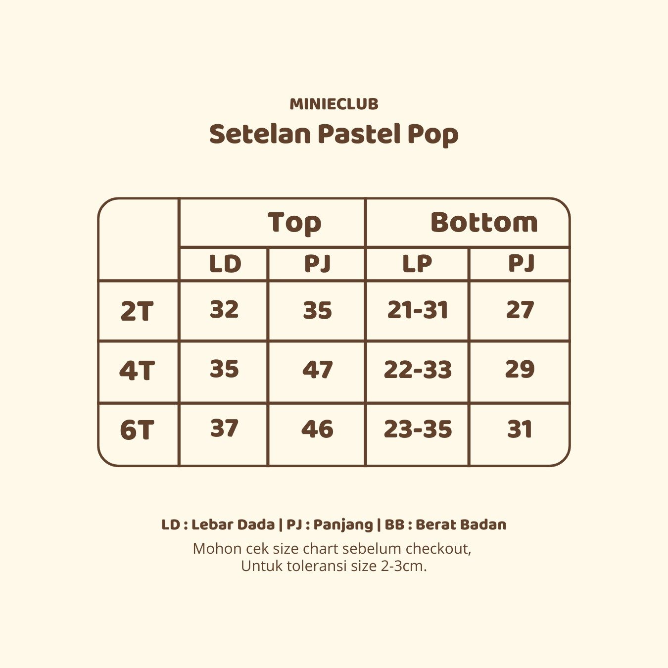 Size chart setelan pastelpop:
